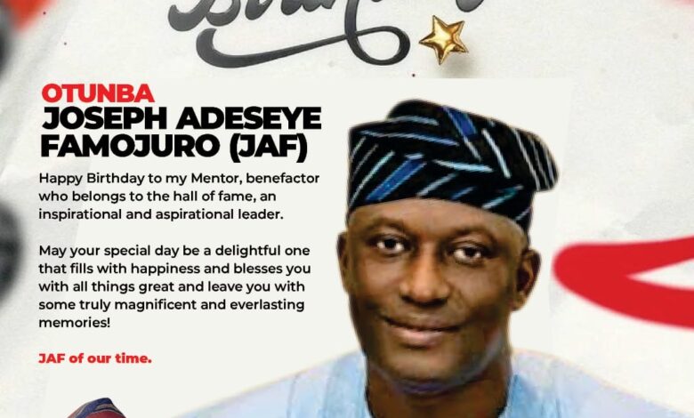 The Chairman of the Oyo State Agency for Youth Development, Adebowale Adebayo Falana, has paid glowing tribute to Otunba Joseph Adeseye Famojuro on the occasion of his birthday, describing him as a leader whose wisdom and mentorship have shaped many emerging voices in Oyo State’s political space.